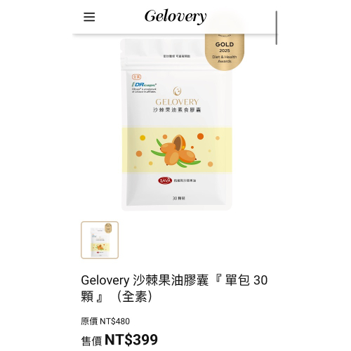 精選富含Omega-7的西伯利亞優質沙棘果,引進最新的榨取技術, 全程不使用化學試劑以萃取出高品質之沙棘果油, 通過ISO國際規範製程,並符合嚴格的歐洲檢驗標準。 .精選西伯利亞優質沙棘果,全程榨取不使用化學試劑。 .66倍濃縮萃取,稀有Omega-7含量高達30%以上。 .包裝尺寸:10.5x16.5cm 【產品規格】 單包30顆,每份2顆,共15份 包裝尺寸:10.5x16.5cm 【關鍵成份(每份)】 沙棘果油 1000 mg Omega-7 400 mg 【使用方式】 每日1-2次,搭配溫開水。一次2顆,飯後食用佳。