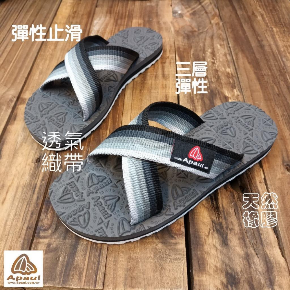 【APAUL 雅鉑】22406-1 灰黑/白 經典雅鉑紋拖鞋 寬版交叉拖鞋