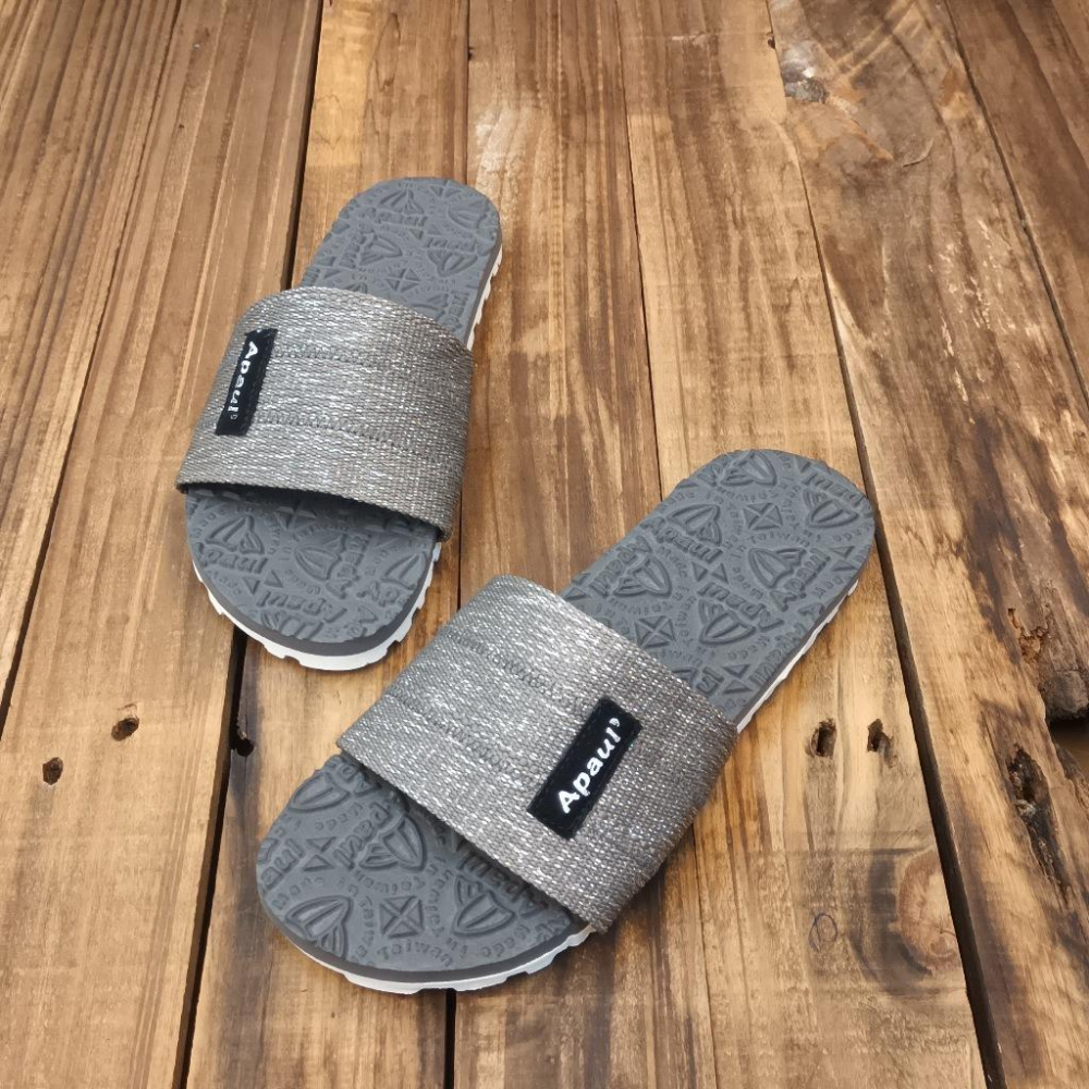【APAUL 雅鉑】12405 灰/灰/白底 經典雅鉑紋拖鞋 寬版一字拖鞋 橡膠質感室內拖鞋 旅行拖鞋