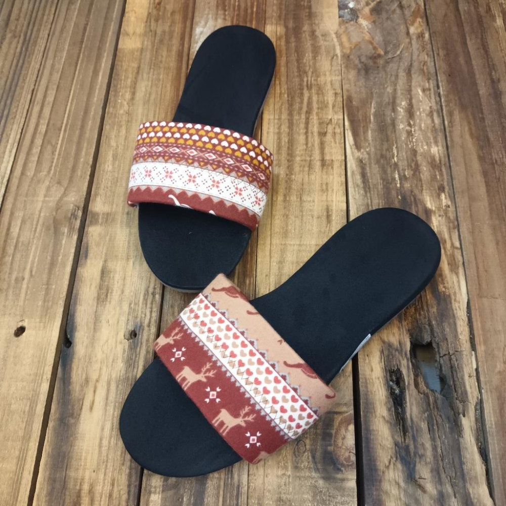 【雅鉑-無印】12403-4 紅迷鹿/黑 運動風室內拖鞋 格紋一字拖鞋 室內止滑拖鞋