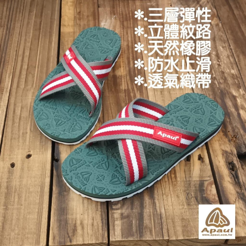 【APAUL 雅鉑】22406-3 灰紅/綠/白 經典雅鉑紋拖鞋 寬版交叉拖鞋
