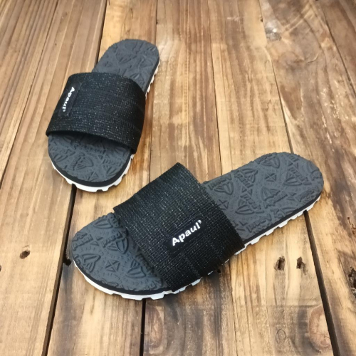 【APAUL 雅鉑】12405 黑/黑/白底 經典雅鉑紋拖鞋 寬版一字拖鞋 橡膠質感室內拖鞋 旅行拖鞋