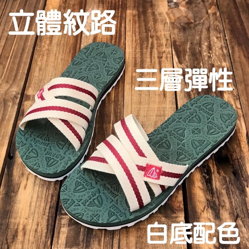 【APAUL 雅鉑】11703-6 米/綠/白 女韓系拖鞋 手作交錯涼拖鞋 橡膠拖鞋 輕鬆旅遊外出拖鞋
