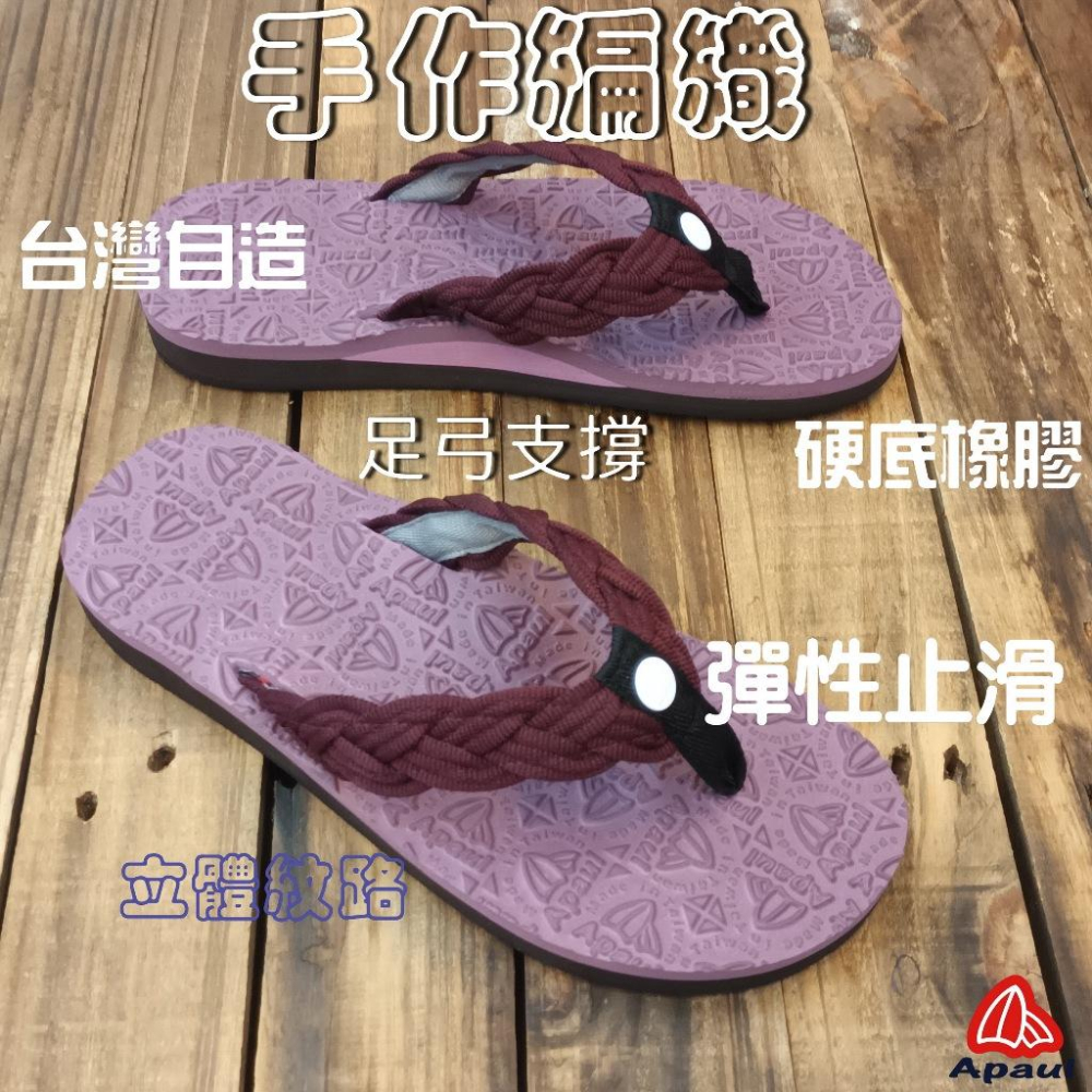 【APAUL雅鉑】32317-7 酒紅/紫 編織寬版拖鞋 美式風格夾腳拖鞋 足弓支撐拖鞋 硬橡膠止滑拖鞋