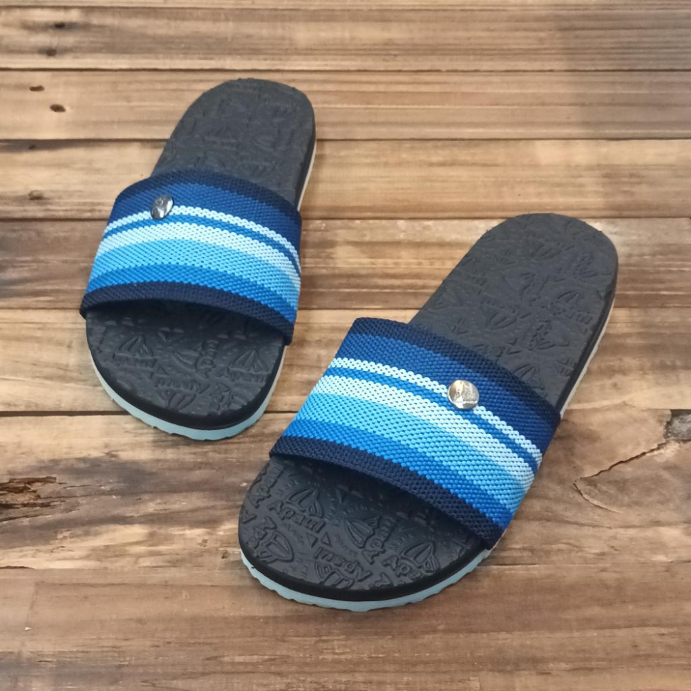 【APAUL雅鉑】12302-2-藍/黑 運動風拖鞋 條紋一字拖鞋 橡膠止滑拖鞋