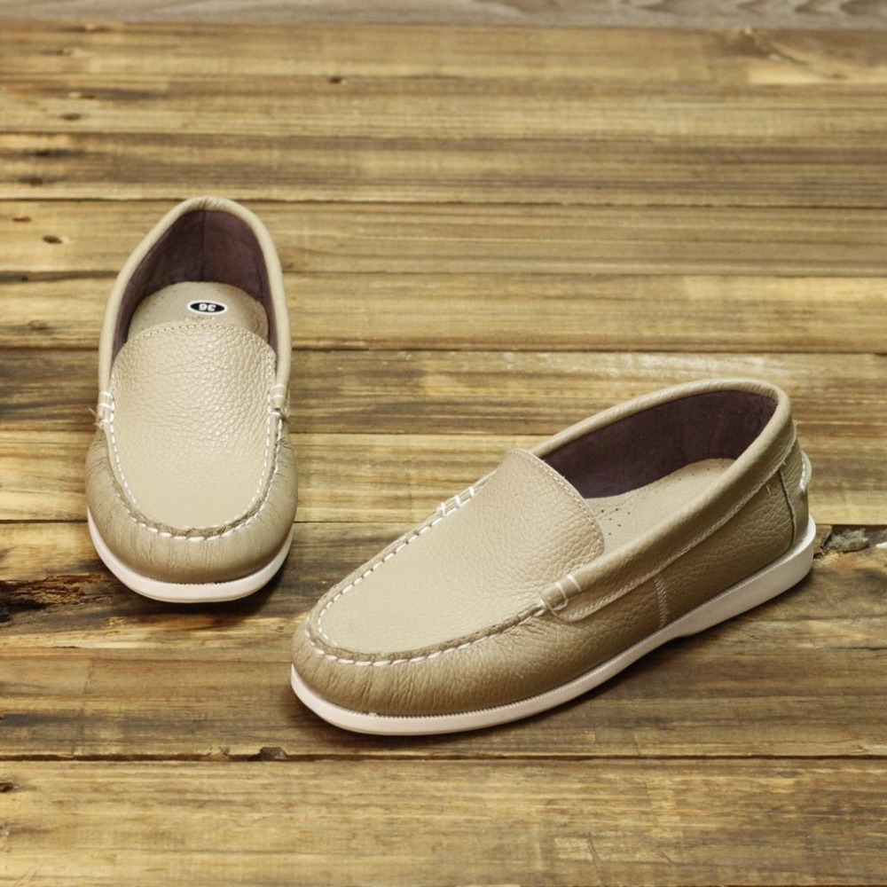 【雅鉑手作】 72201 奶茶色 牛皮休閒鞋 縫線平底鞋 帆船鞋 下單訂製鞋