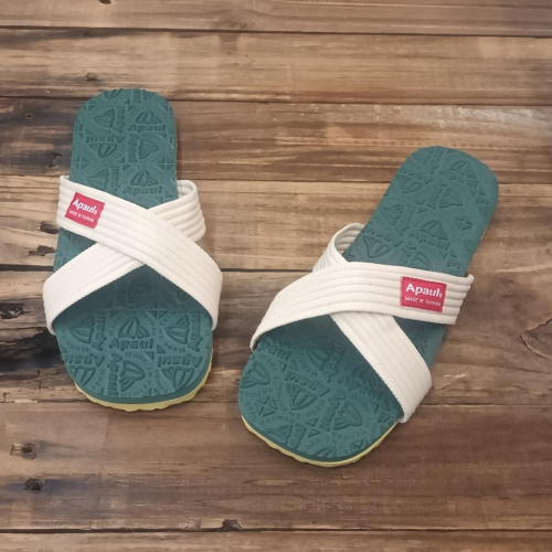 【APAUL雅鉑】22303 米綠-經典交叉拖鞋 雅鉑紋交叉拖 情侶橡膠拖鞋 親子鞋