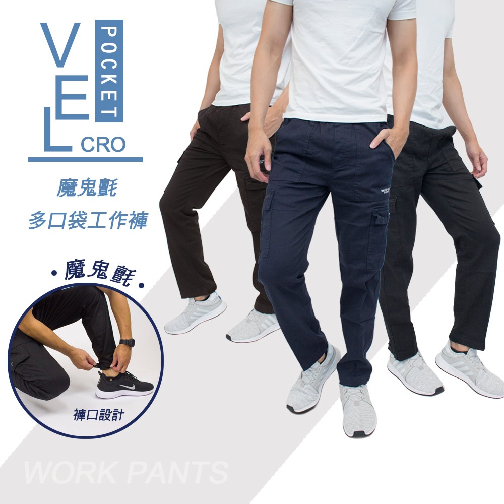 口袋可插筆魔鬼氈束口工作褲 多口袋工作褲 鬆緊 束口褲 縮口褲 cargo pants