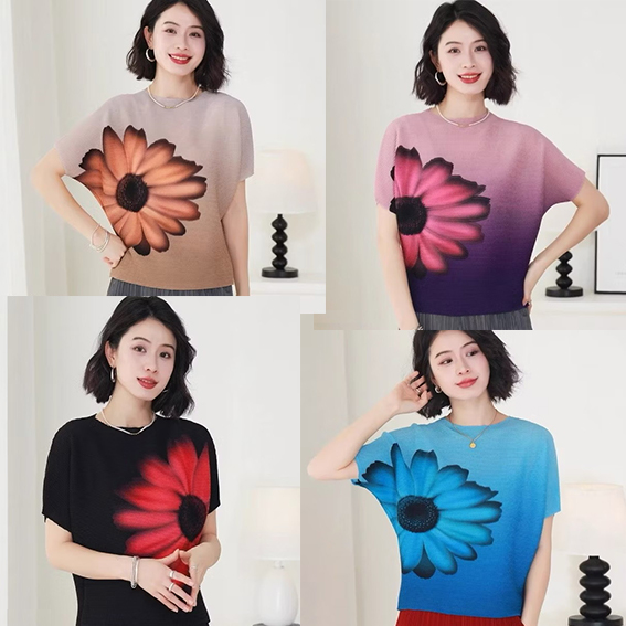 【2025年新款】漸層小米格印花-太陽花蝙蝠袖 腰部顯瘦