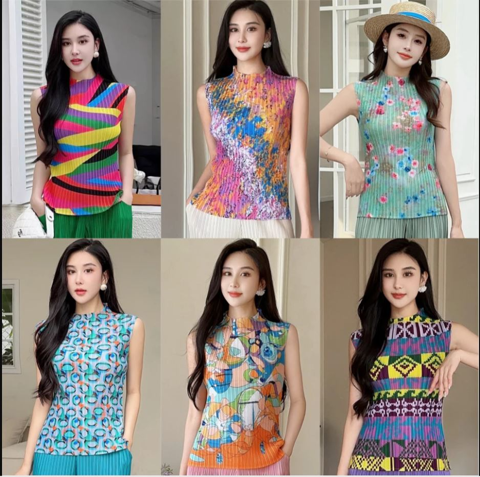【2025年新款】三宅褶皺 修身立領印花背心