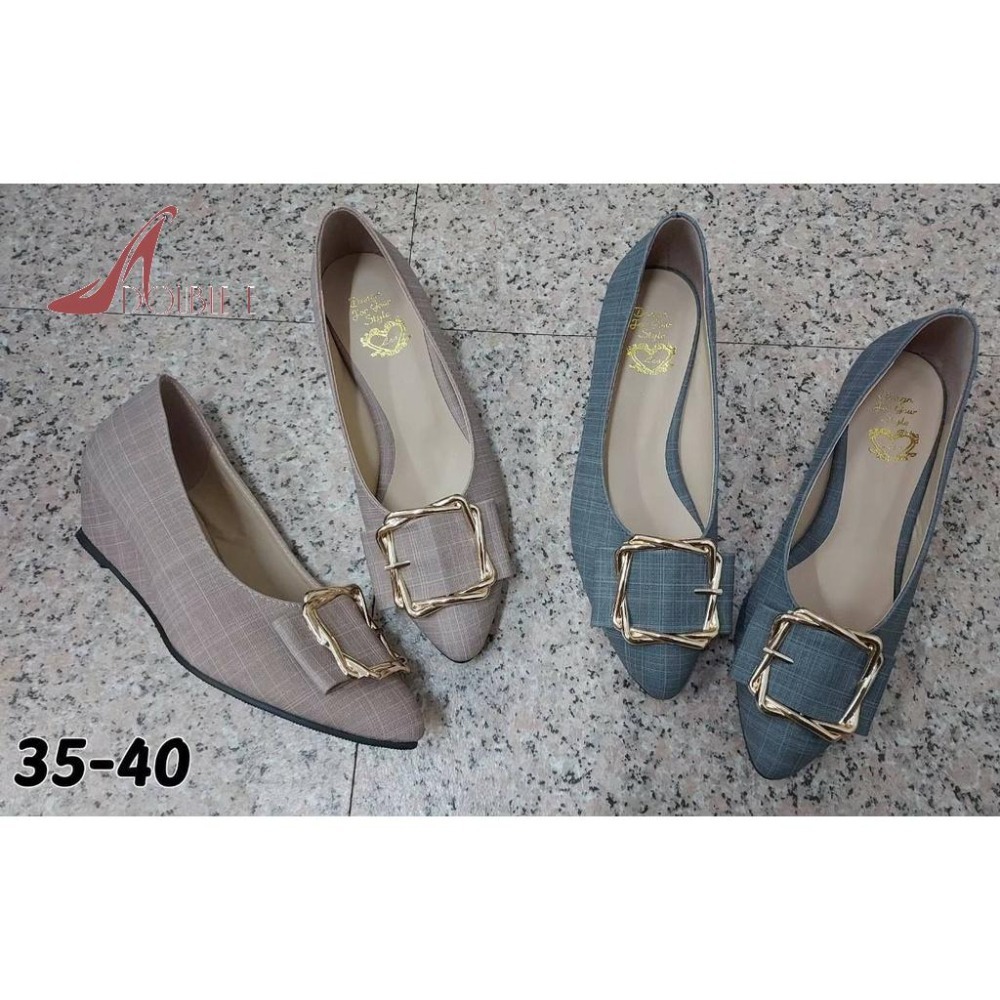 TATA【現貨➕預購】台灣製金色飾扣楔型尖頭包鞋女鞋娃娃鞋有根女鞋休閒鞋