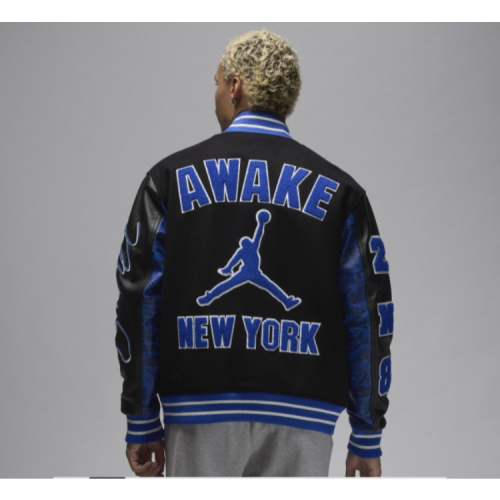 這次與 Awake NY 的合作,致敬了喬丹的出生地與 Jordan 品牌發展歷程之間不可或缺的連結。羊毛材質的衣身和皮革袖子賦予這款按扣前襟夾克經典的學院風造型。