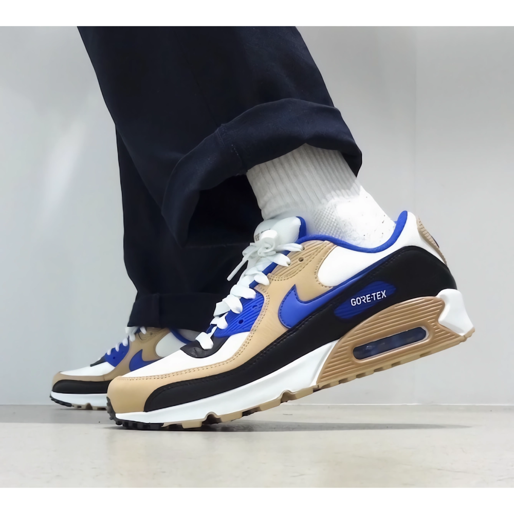經典的 Air Max 90 ,沿襲 1990 元年款的經典設計線條,並於鞋面添加 Gore-Tex 防水塗層,提供雙足時刻乾爽舒適機能性。