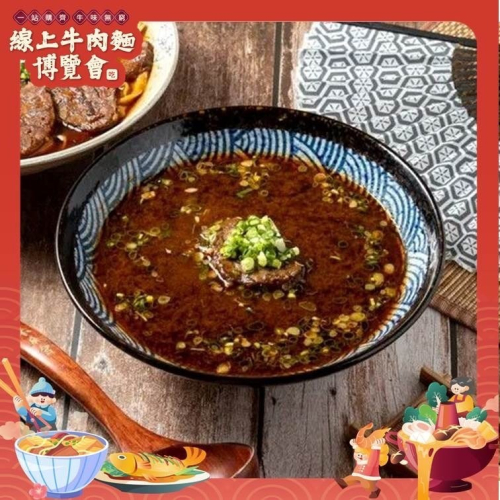 (冷凍包內含入味牛肉、牛肉湯,未含麵、蔥與青菜)。