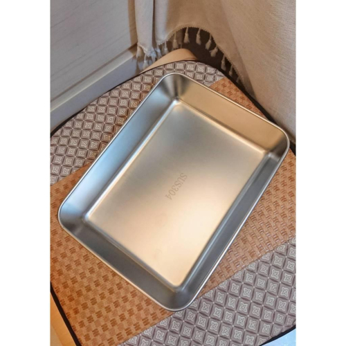 這個料理盤是我私心想要的 可盛裝燒烤、麵包、沙拉、涼菜、糕品、烤魚等...一盤多用 用來備料也很方便 邊緣捲邊設計,圓潤光滑,防止割傷手 材質:304不鏽鋼 產地:中國 尺寸:20*25.5*5.5cm