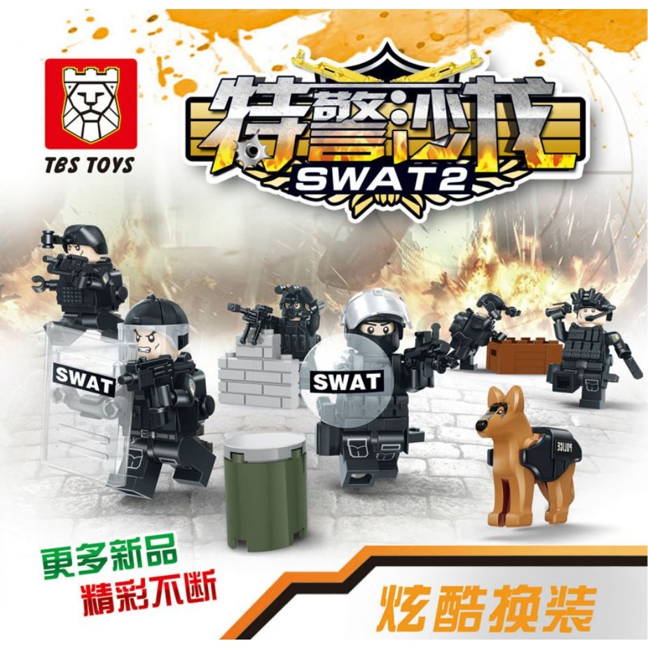 TBS11-16 警察系列 特警沙龍帶武器 防彈衣 警犬 特警裝備 拼裝積木人偶