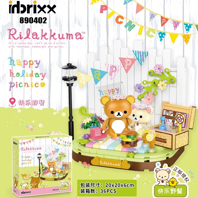 潘洛斯890402 泰迪熊 拉拉熊 輕鬆小熊 正版授權 快樂野餐 可愛小物裝飾 拼裝積木