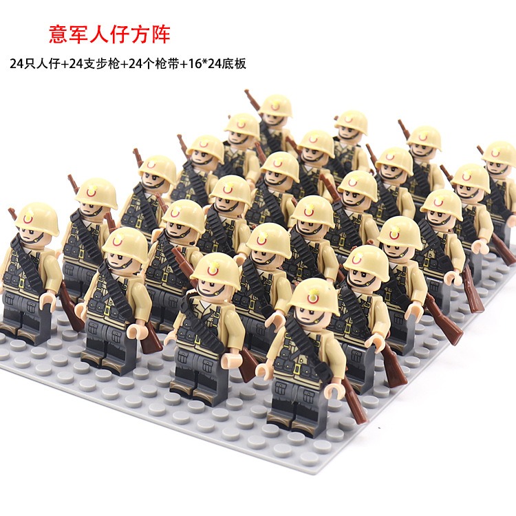 D268 袋裝積木人偶 軍事系列 二戰 意軍 24隻人偶配槍 附底板