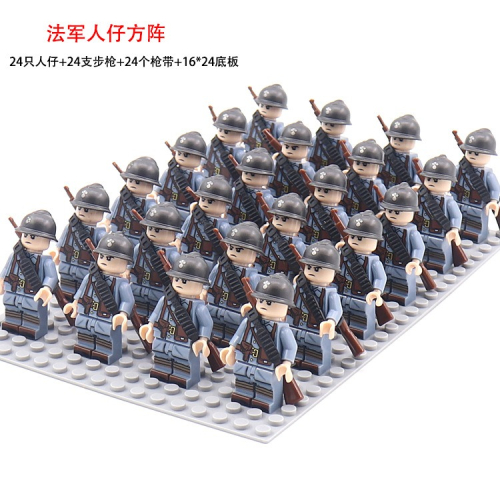 D266 袋裝積木人偶 軍事系列 二戰 法軍 24隻人偶配槍 附底板