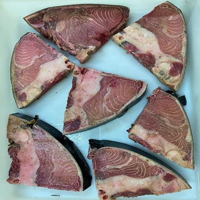 (2)此品是台灣專門補撈鮪魚的超低溫遠洋漁船,於南太平洋或印尼區域補獲!皆是取切大型150-200kg以上大隻的南方黑鮪,油脂度專業度皆是一流品質!