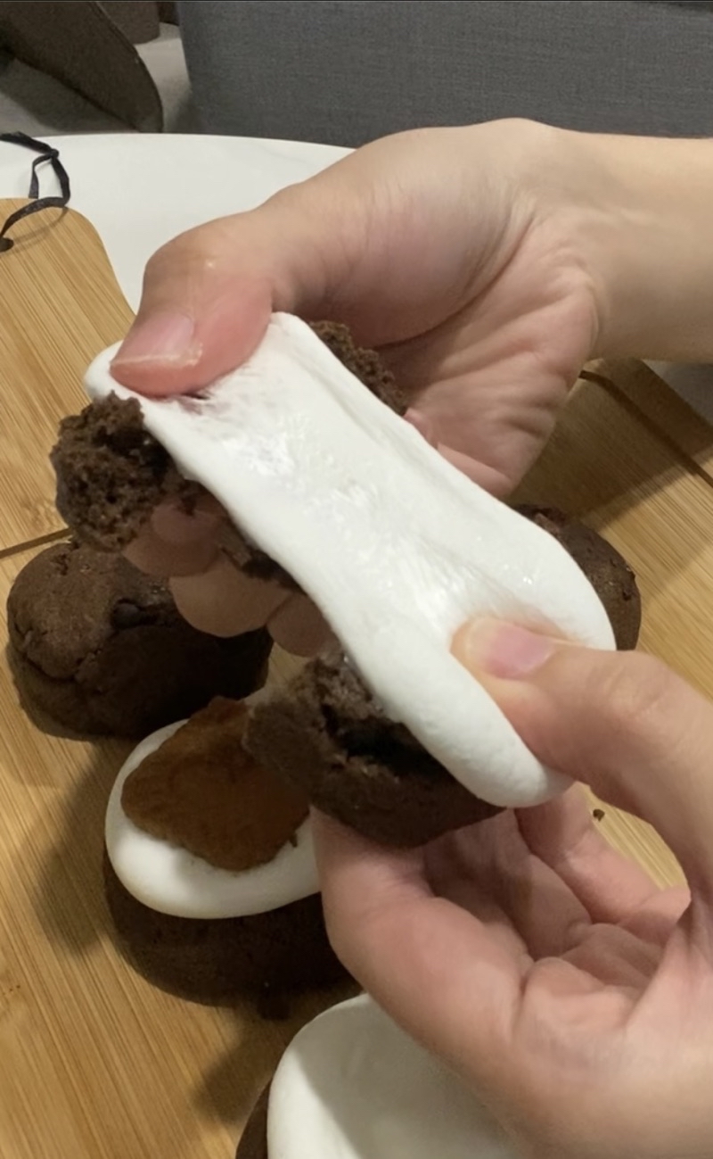 帶有可可香氣的主體有著巧克力豆的苦甜,再加上棉花糖拉絲口感🤤