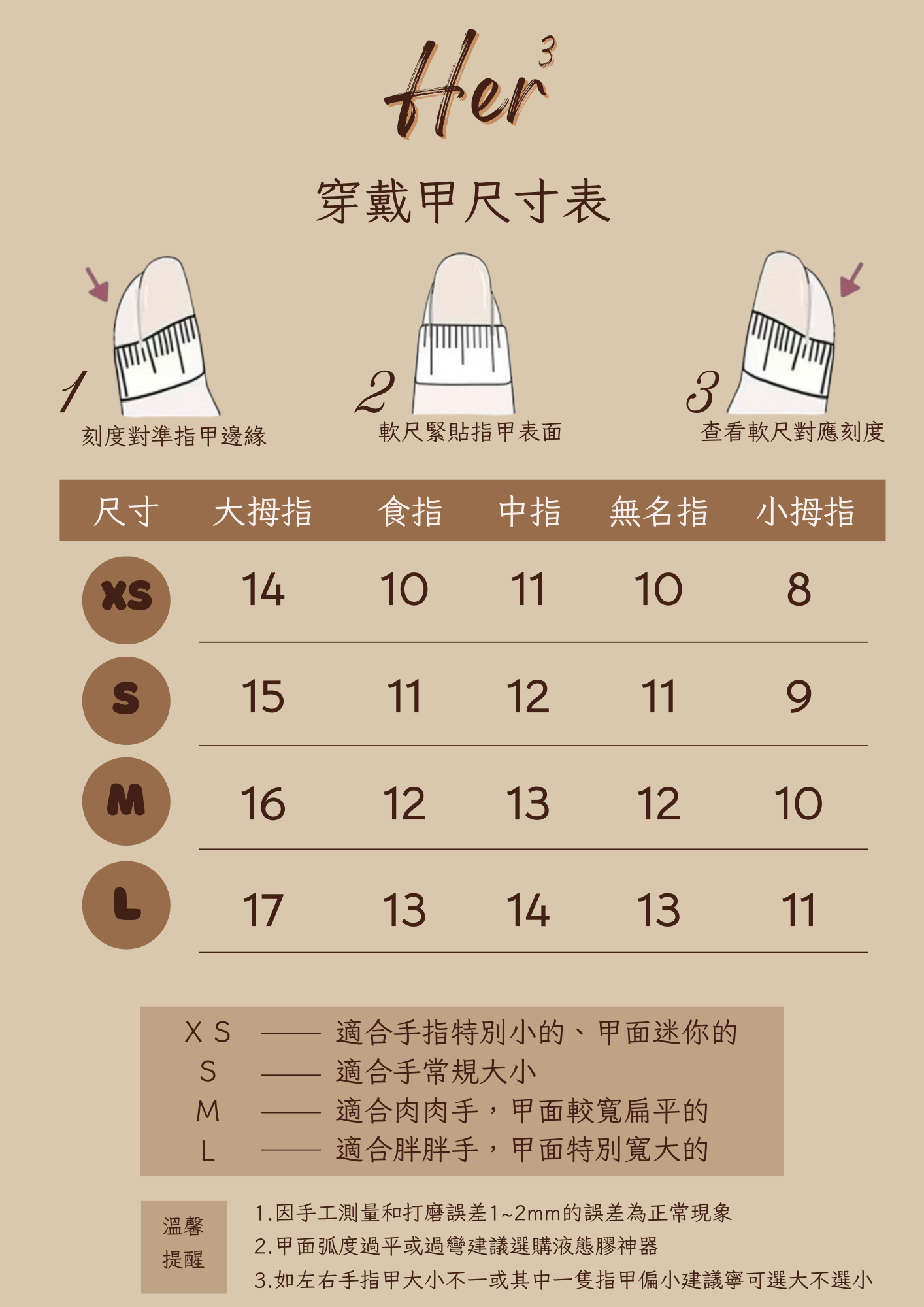 穿戴甲中指長度約 2cm