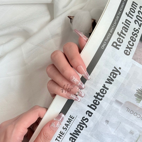 Her ³[紫仙蝴蝶]N0040清透K9鑽顯白高級法式貓眼穿戴甲