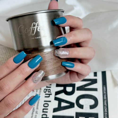 Her ³[蔚藍湖畔]N0075沉靜藍綠單色高級感穿戴甲