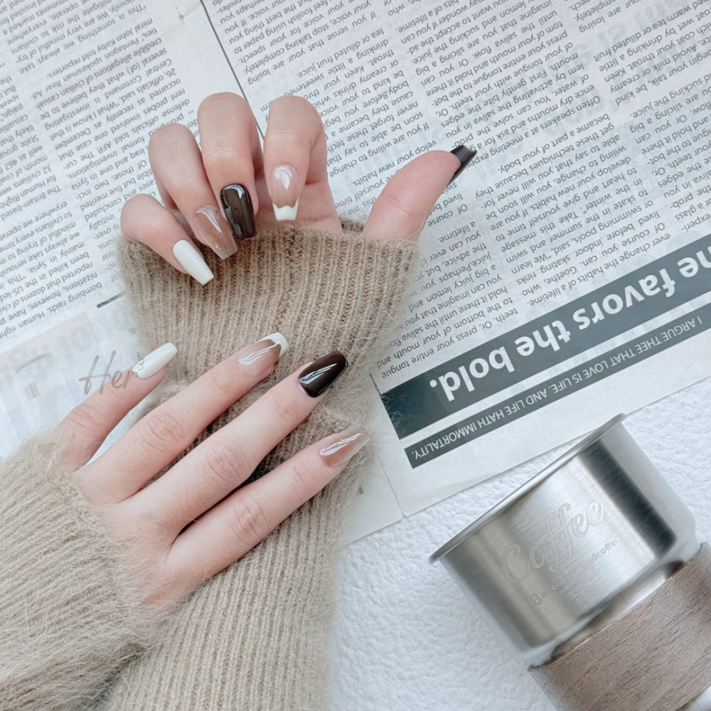 Her ³[融白奶咖]N0083不規則奶白單色漸層感美拉德咖色穿戴甲