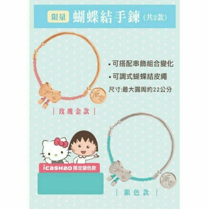 7-11 櫻桃小丸子 X Hello Kitty 限量蝴蝶結皮繩手鍊 聯名手鍊 銀色款 玫瑰金款 合售