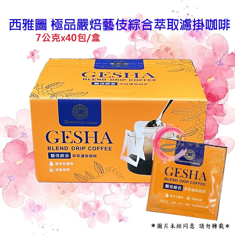 【品名】西雅圖 極品嚴焙藝伎綜合萃取濾掛咖啡 7公克 X 40入