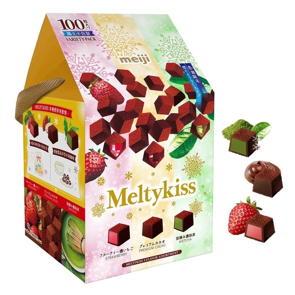 品名 : 明治Meltykiss綜合三種類可可粒 406.6公克 (牛奶可可粒/草莓夾餡可可粒/抹茶夾餡可可粒)