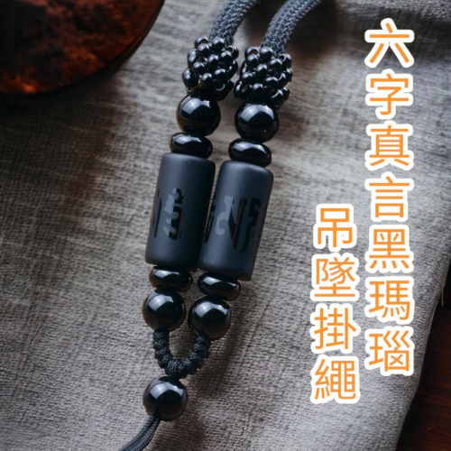 👉【品名】天然磨砂黑瑪瑙/紅瑪瑙六字真言吊墜掛繩