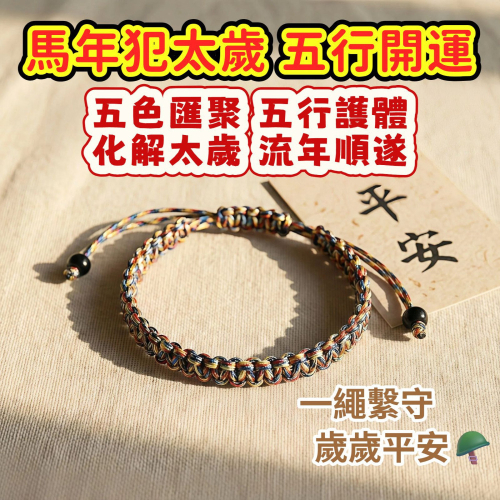 五色線手鍊 開運手繩 馬年本命年 招財避邪保平安 純手工編織 五行轉運 幸運繩 防小人轉運 男女情侶 結緣禮物