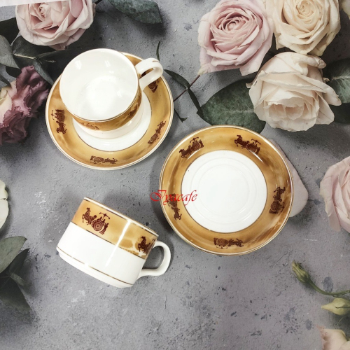 名稱 馬車骨瓷對杯特色質感系咖啡杯下午茶良伴咖啡館、餐廳營業用