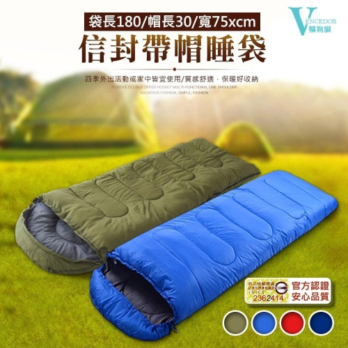 【VENCEDOR】 露營 登山 旅行睡袋 單人睡袋 超輕睡袋 信封式帶帽成人戶外露營睡袋 現貨 滿499免運