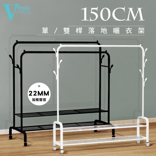 【VENCEDOR】 吊衣架 曬衣架 150cm寬 雙層落地掛衣置物架-附輪 衣帽架 簡易晾衣架 現貨 滿499免運
