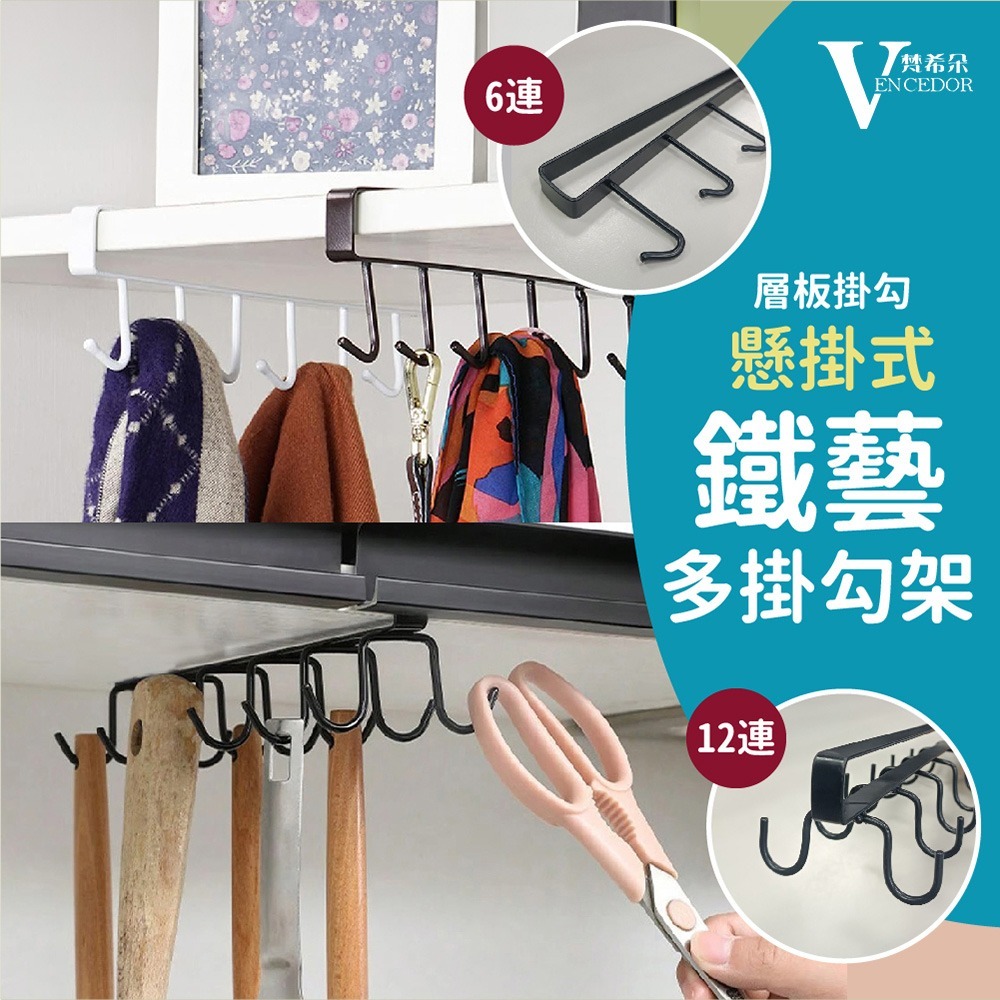 【VENCEDOR】 六連排掛勾+附贈螺絲 隔板鐵藝插入掛鈎 層板壁掛式掛鈎 櫥櫃掛架 現貨 滿499免運