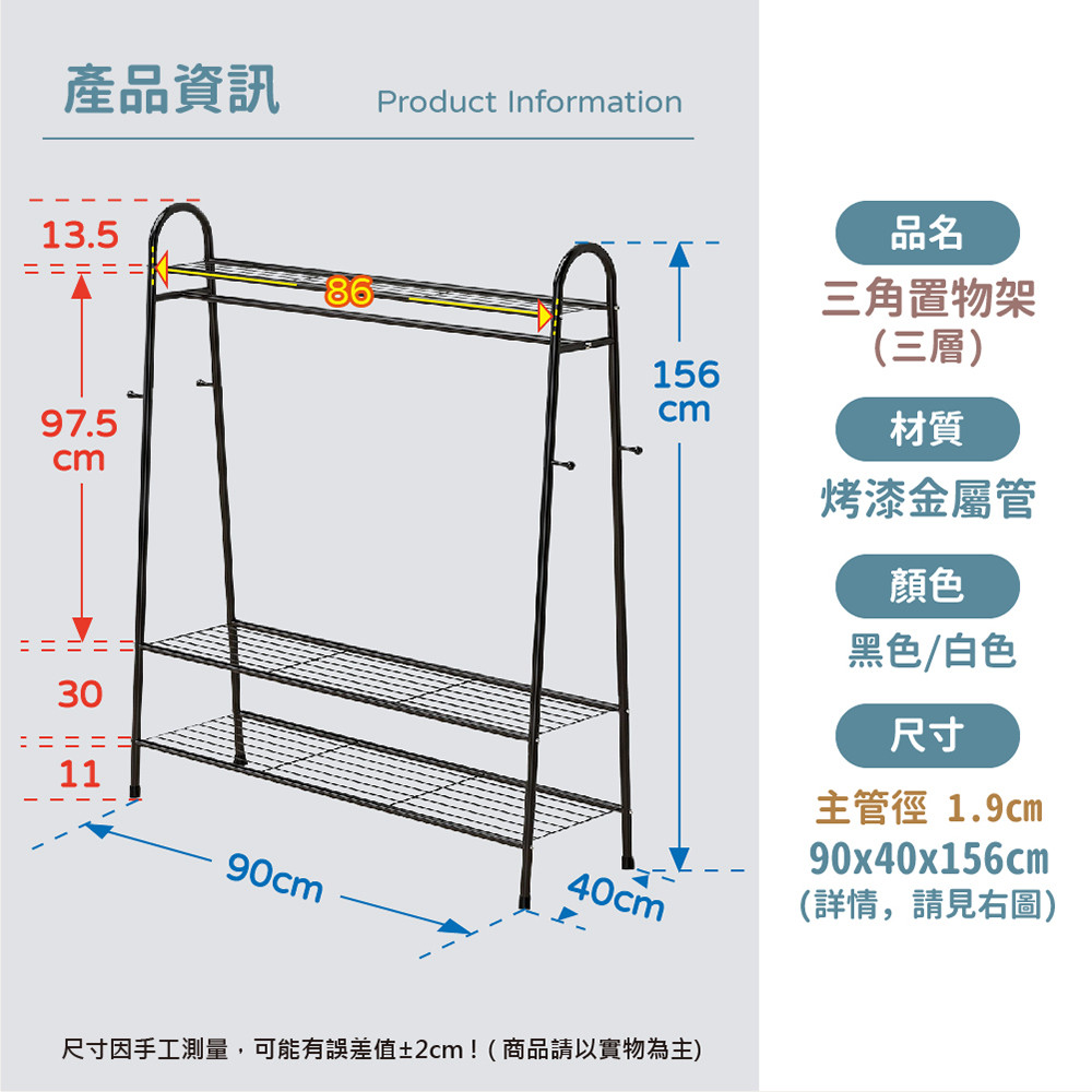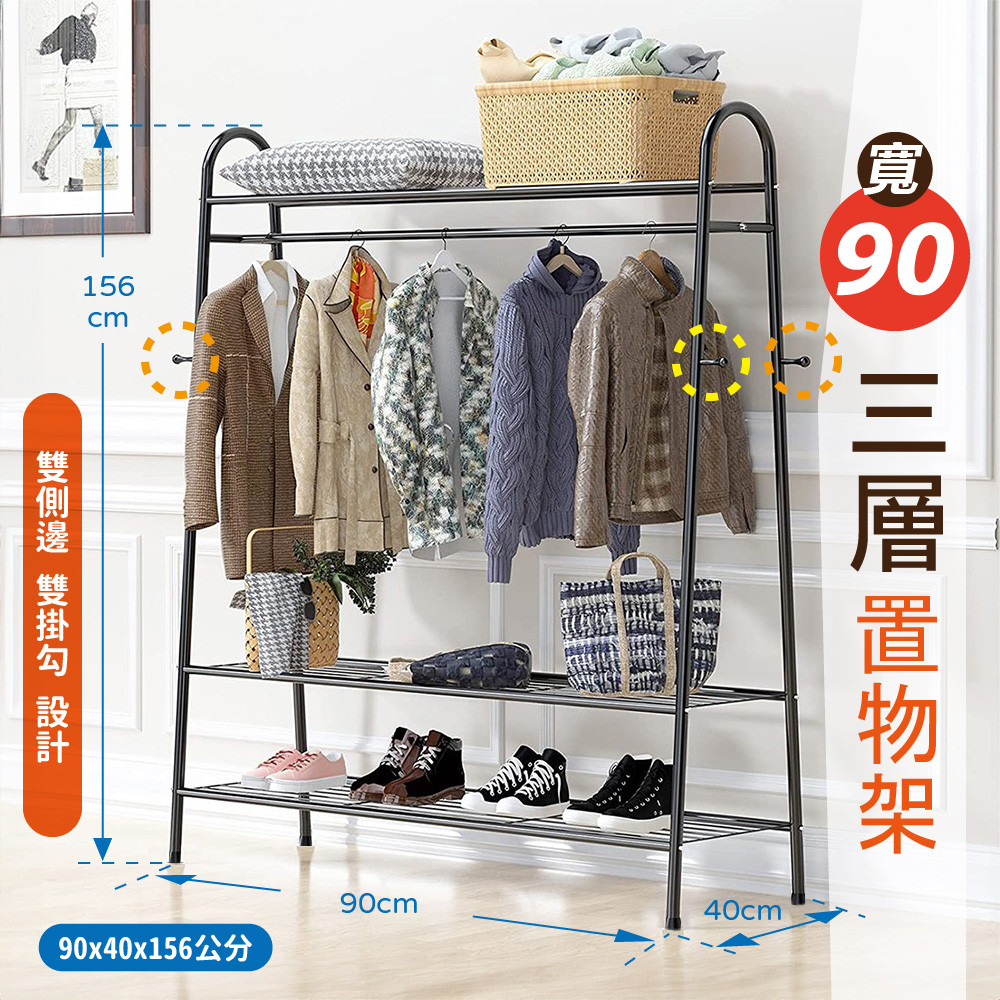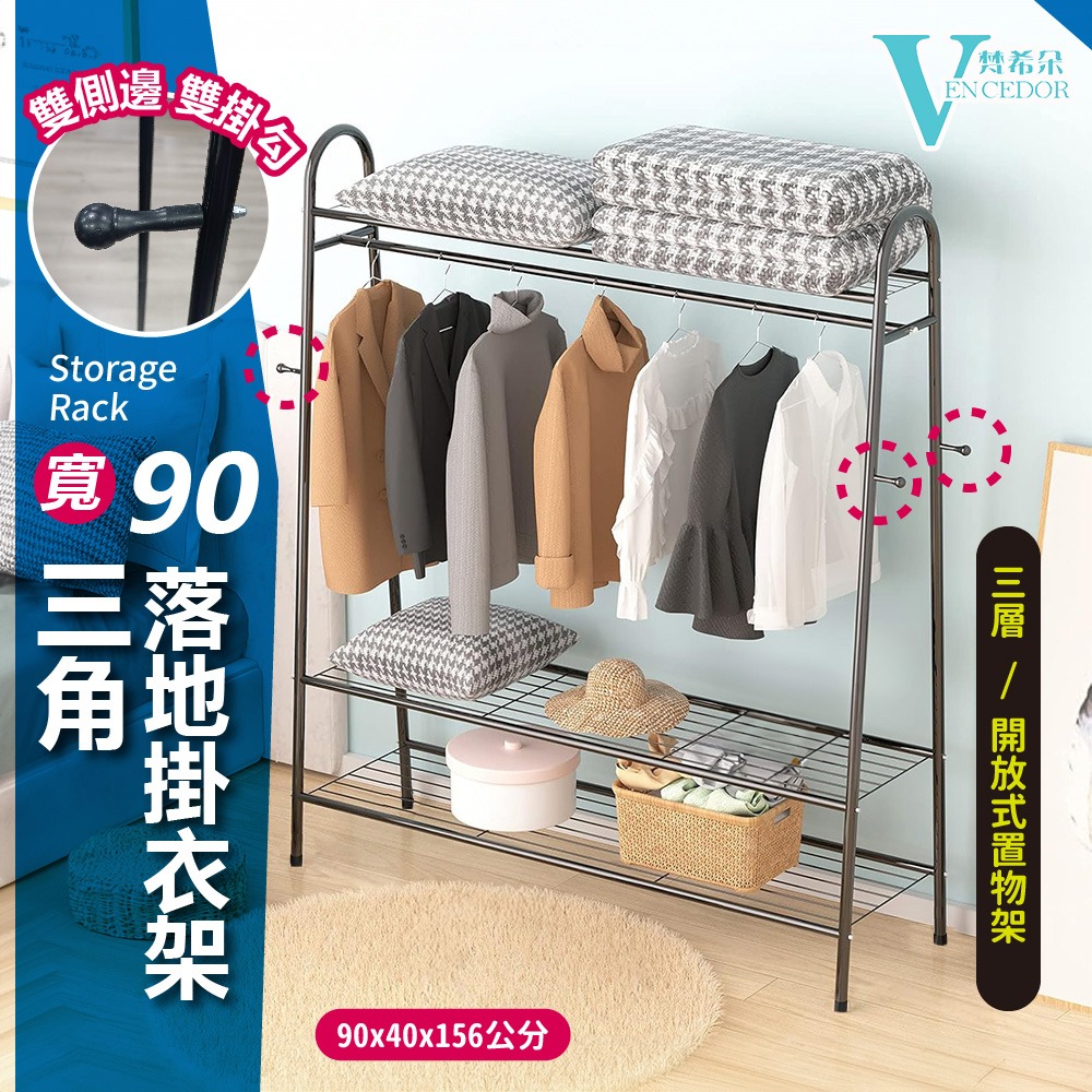【VENCEDOR】 寬90公分 鐵管三角掛衣架 衣帽架 三層落地掛衣架 簡易置物架 DIY商品 現貨 滿499免運