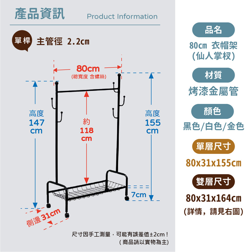 【單層款 尺寸】80 x 31 x 155 cm (±3公分)
