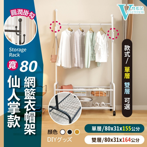【VENCEDOR】 80cm 仙人掌造型網籃鏤空衣帽架附輪 80公分掛衣桿籃網 置物架 現貨 滿499免運