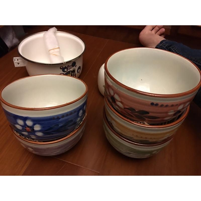 高雄市民族路麥當勞可面交全新彩繪陶瓷碗 兩大三小 飯碗 碗公 餐具 上釉 釉彩 日式