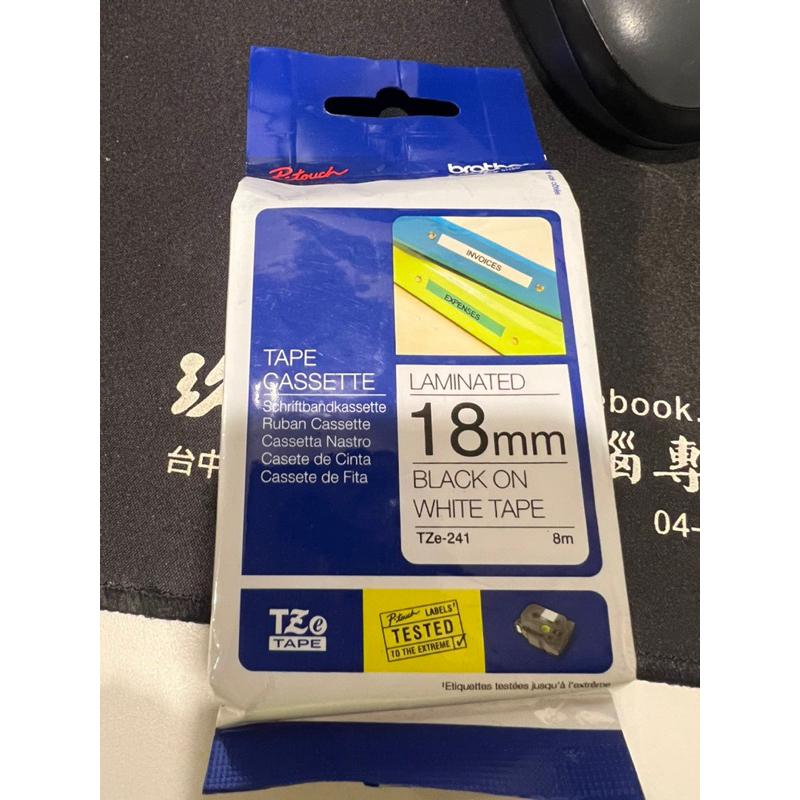 岡山可面交全新brother 18mm 原廠護貝標籤帶TZe-241 白底黑字