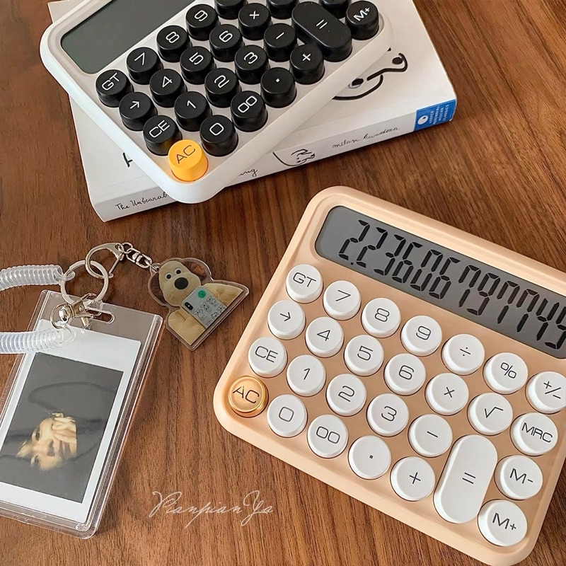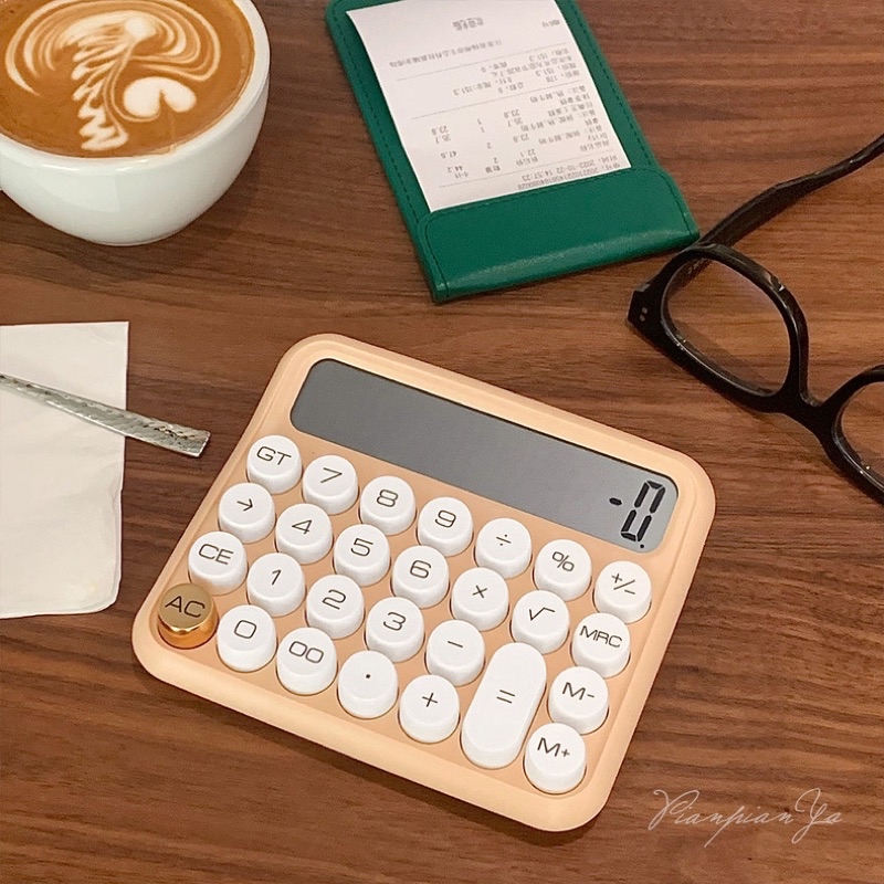 復古計算機 奶茶色 計算機 桌上型計算機 造型計算機 財務計算機 辦公用 商用 機械按鍵 禮物