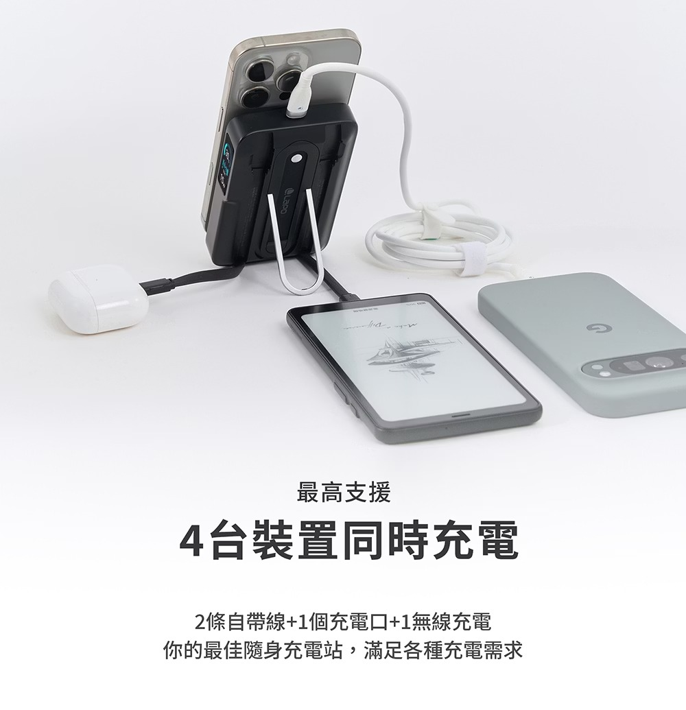 • 全功能六合一設計,最高支援4台設備同時充電