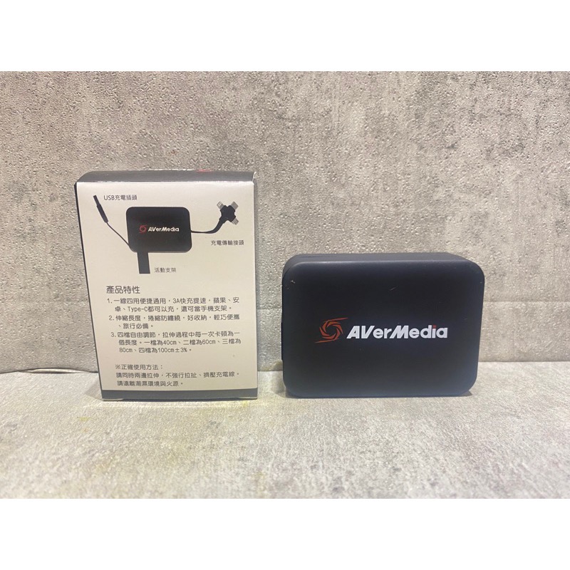 AverMedia三合一收納充電線 3A快充提速 蘋果 安卓 Type-c手機支架 圓剛股東會