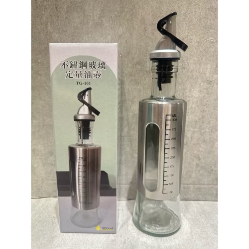 不銹鋼玻璃定量油壺300ml 油罐 油瓶 醬油瓶 不鏽鋼醬料瓶 料理瓶 調味瓶 醬料罐 玻璃瓶 醋瓶 調味料罐 調味罐