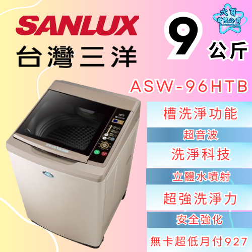 六百公司600哥 三洋洗衣機冰箱 ASW-96HTB 洗衣機刷卡.無卡分期 全新洗衣機