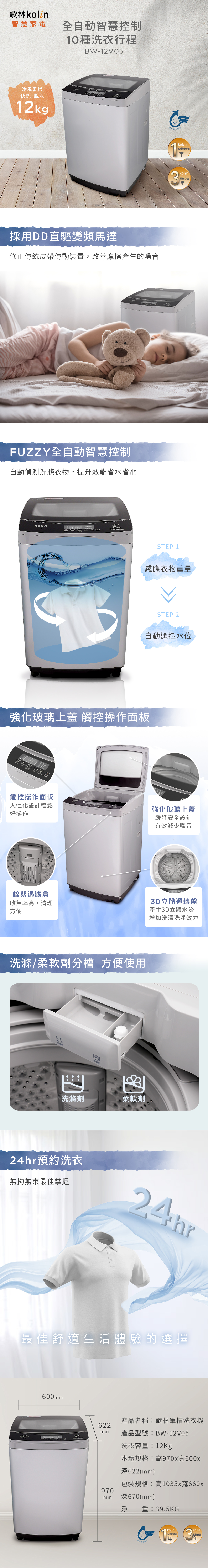 六百有限公司 600哥 歌林洗衣機BW-12V05 洗衣機刷卡.無卡分期 家用洗衣機 全新洗衣機