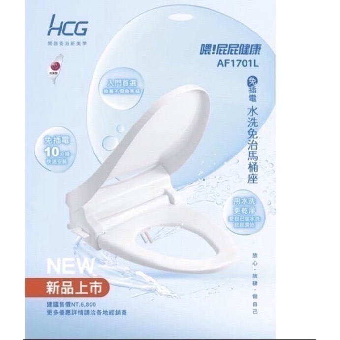 HCG和成 AF1701L 免插電水洗免治馬桶座 加長型47cm